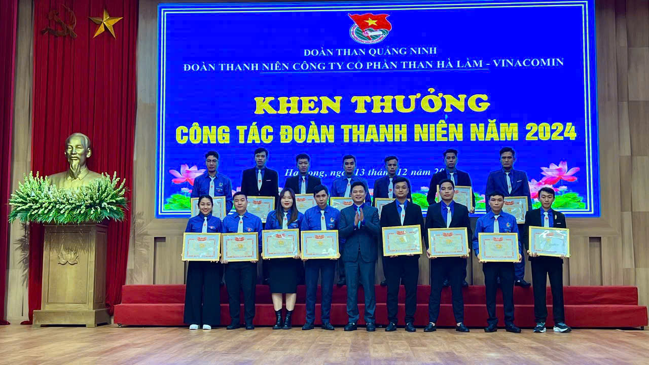 Ảnh 7. Các tập thể và cá nhân có thành tích xuất sắc trong công tác Đoàn và phong trào Thanh niên năm 2024 được Đoàn Than Quảng Ninh tặng Giấy khen.
