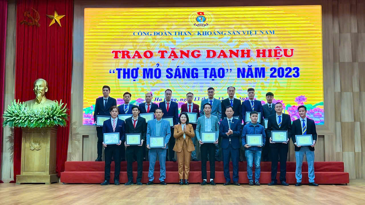 Ảnh 6. Các cá nhân được Công đoàn TKV tặng danh hiệu “Thợ mỏ sáng tạo” năm 2023.